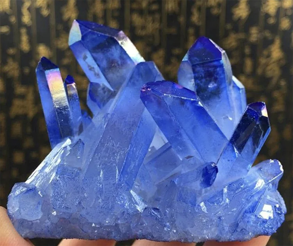Aqua Aura is quartz that has been coated with a thin layer of gold to produce its vibrant iridescent blue sheen. The coating is applied using a process called vapor deposition, bonding the gold atoms to the quartz at high temperatures.